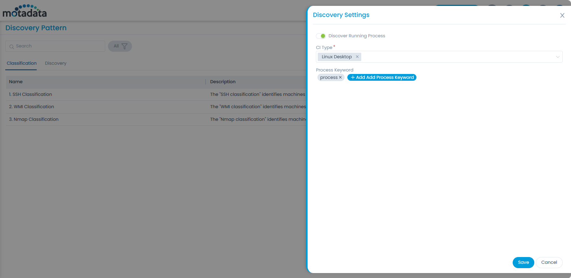 - Classification: This is used to get the basic details of the system like OS and kernel. The default supported pattern are: WMI and SSH classification.