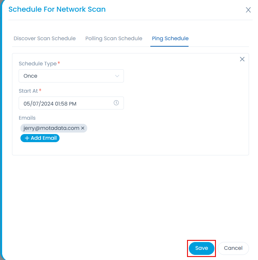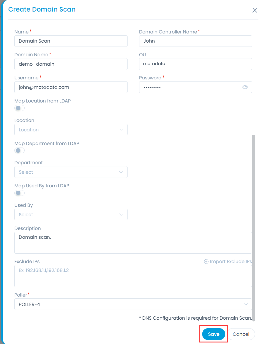 - Schedule the domain scan. For more details, refer to the section Network Scan.