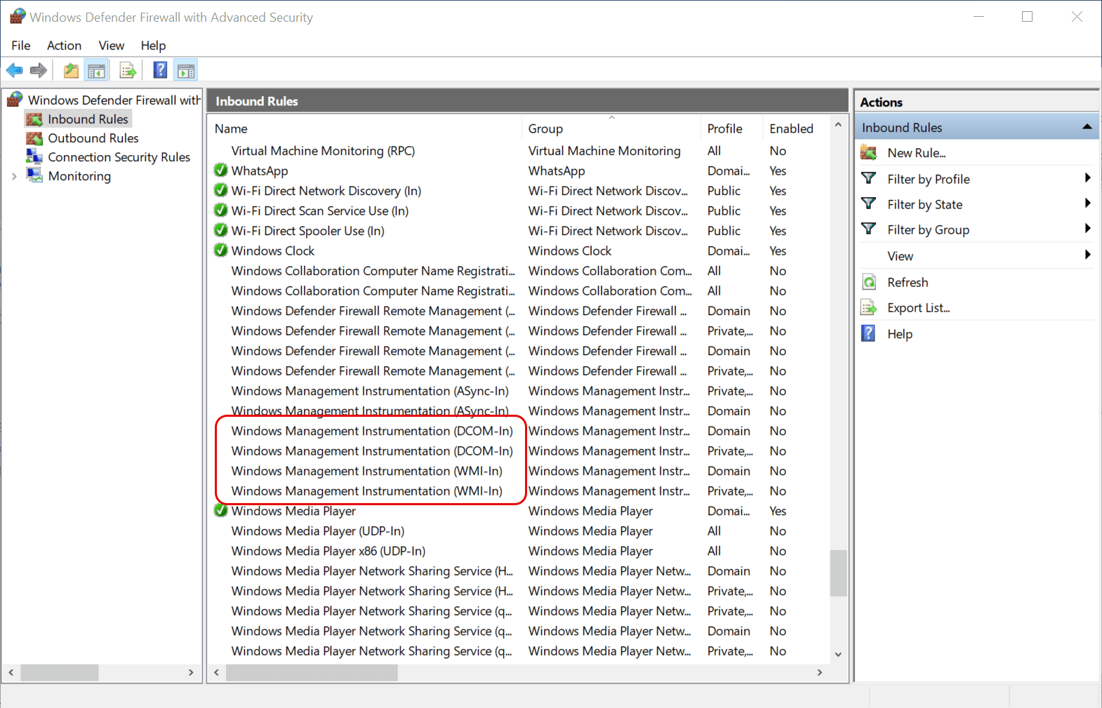 - Windows Management Instrumentation (DCOM-In) (Private, Public)
