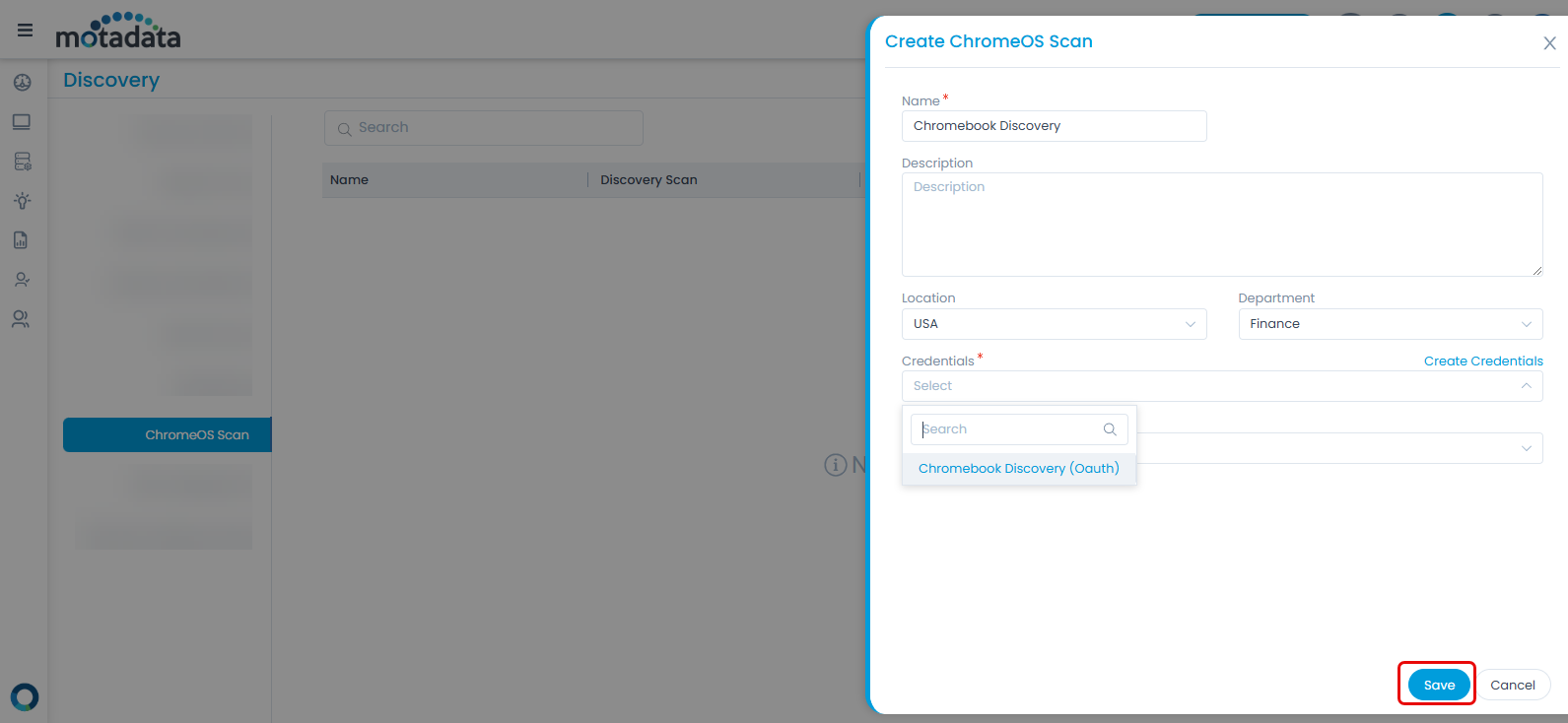 - Credentials: Select the OAuth credentials created to discover the ChromeOS devices.
