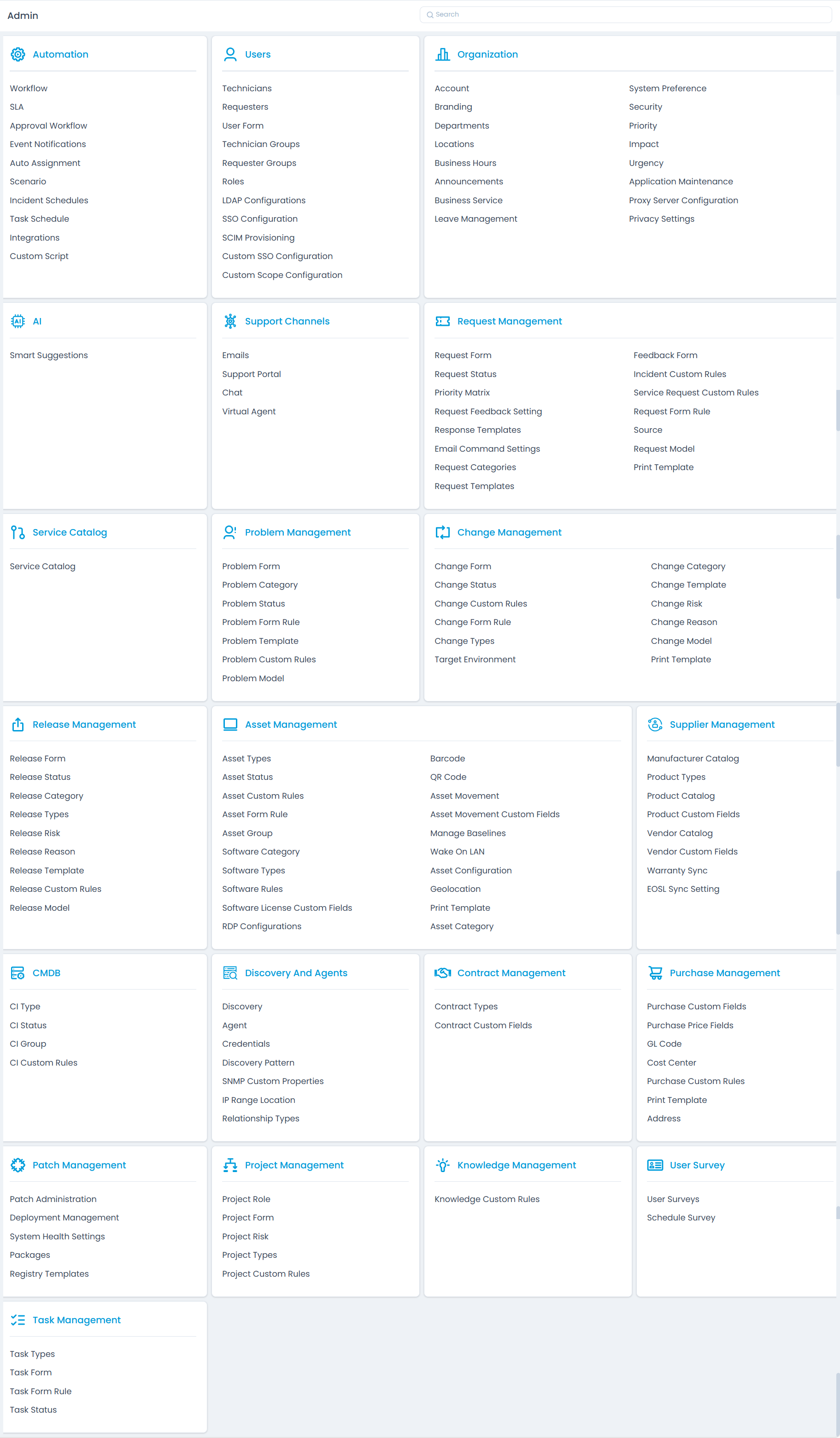 - Problem Management: This section manages the features and configurations related to the problem module.