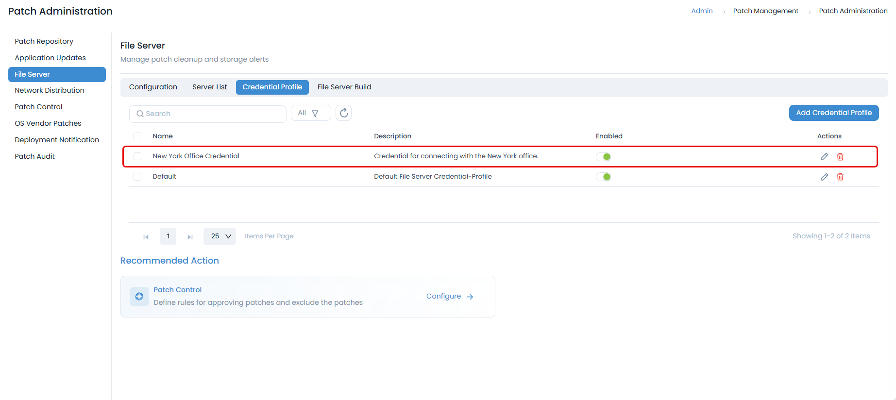 - Credential Profile: Enables the creation and management of credentials required to establish a secure connection between ServiceOps and the file servers.