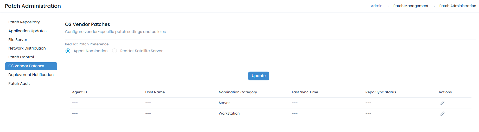 - Agent Nomination: Select this option to nominate specific agents that will be used for managing RedHat patches.