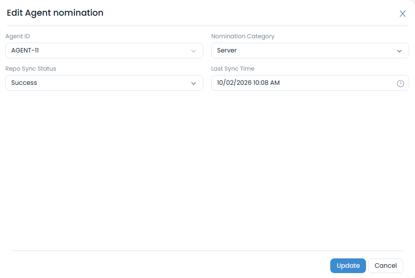 - Click Update to save your changes. If no agents are nominated, the record will remain blank.