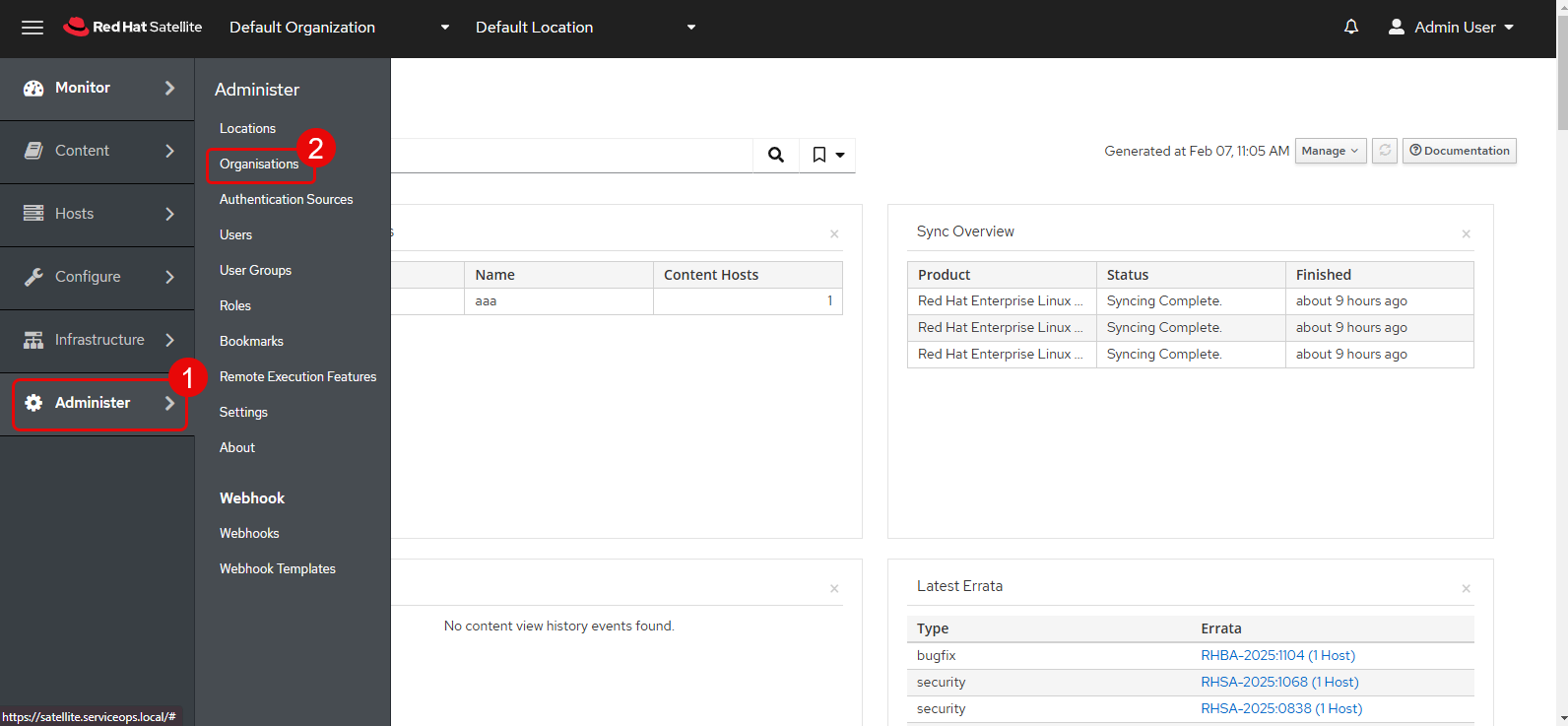 https://satellite.serviceops.local).Username and Password: Enter the username and password for the satellite server.