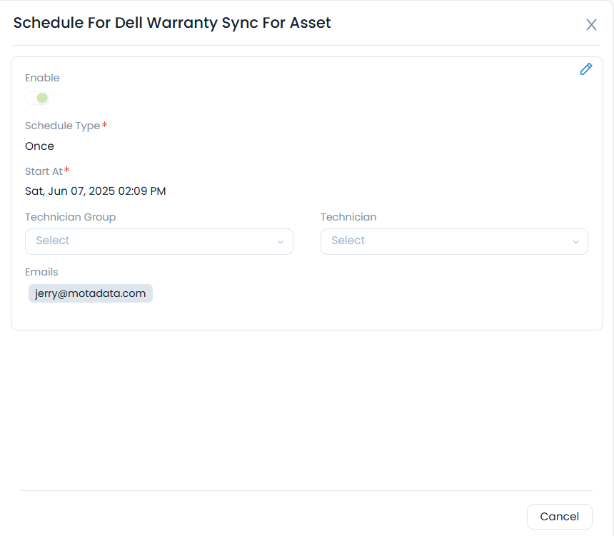 - Edit: You can edit the warranty sync details.