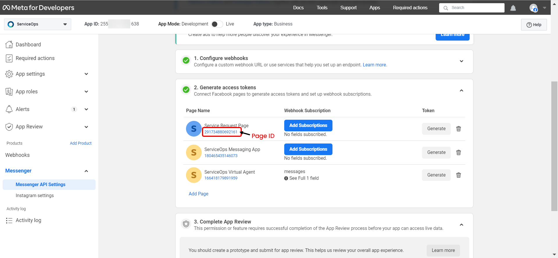 Verify Token: Use the token entered in the Verify Token field of ServiceOps Messenger Settings.