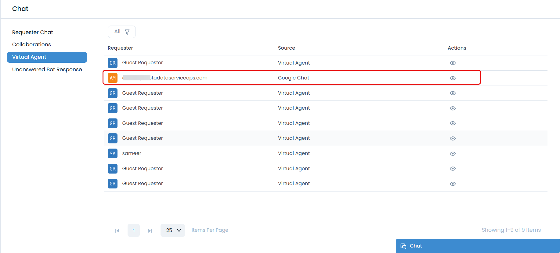 - Chat History: The chat history for interactions via Google Chat is available in the Chat Console > Virtual Agent.