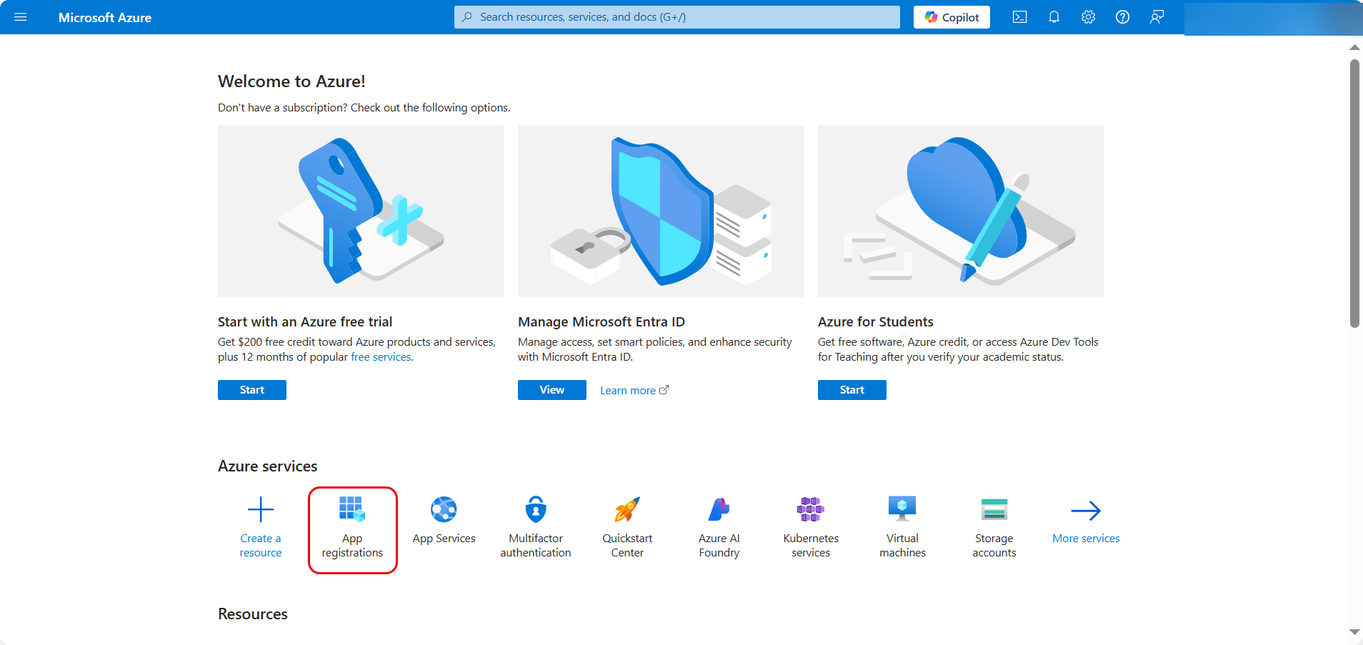 Open the azure portal using the link "https://portal.azure.com/#home". Sign In to the portal if you are not signed-in.