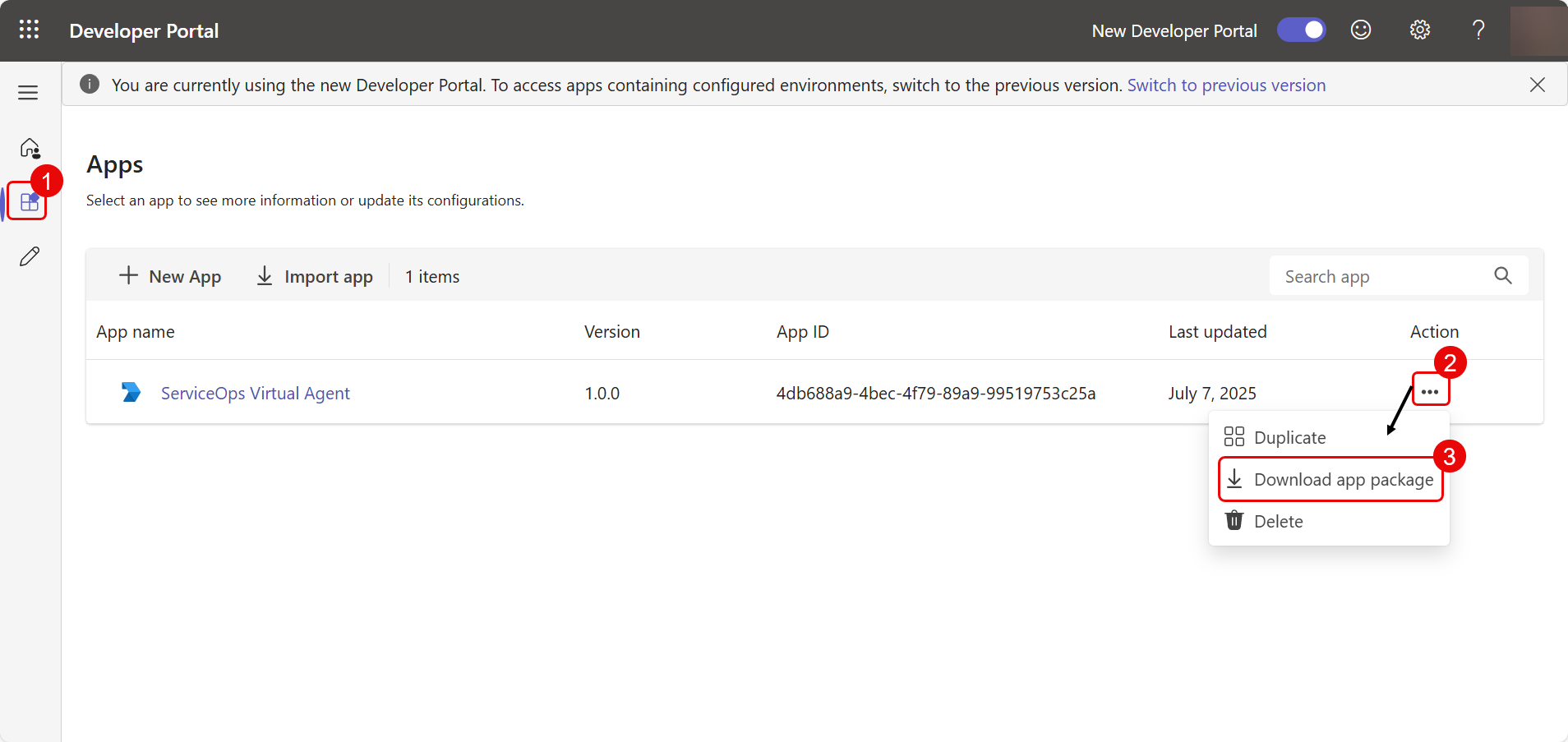 - Now, navigate to Apps, click the More Options icon (3 dots) and Download the app package. A zip file will get downloaded.
