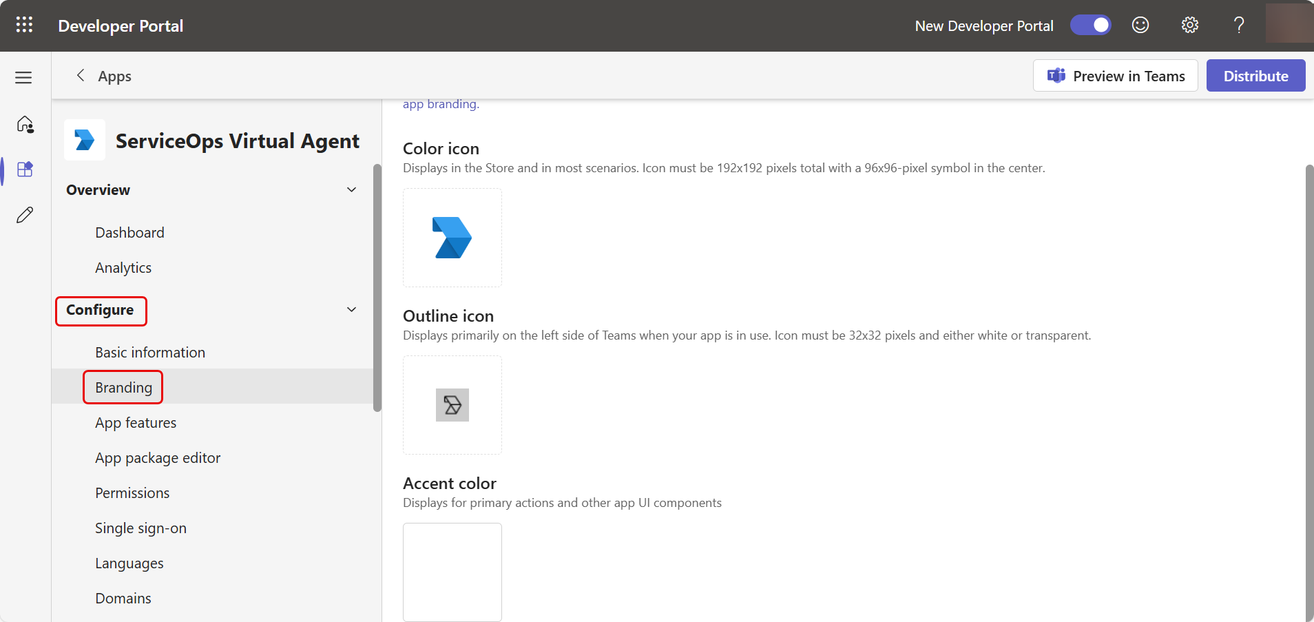Step 7: In the Branding tab, set the Color and Outline icons for the App.