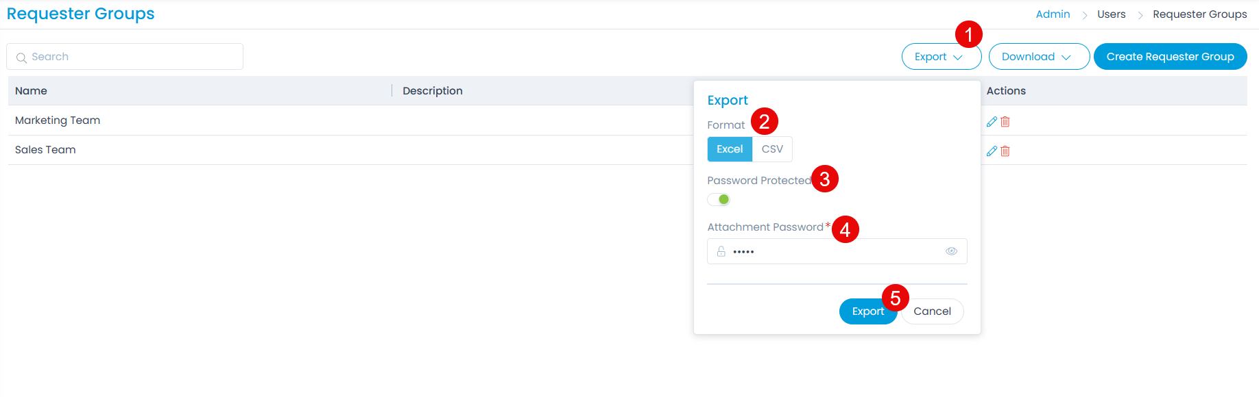 - Export the list of Requester Groups