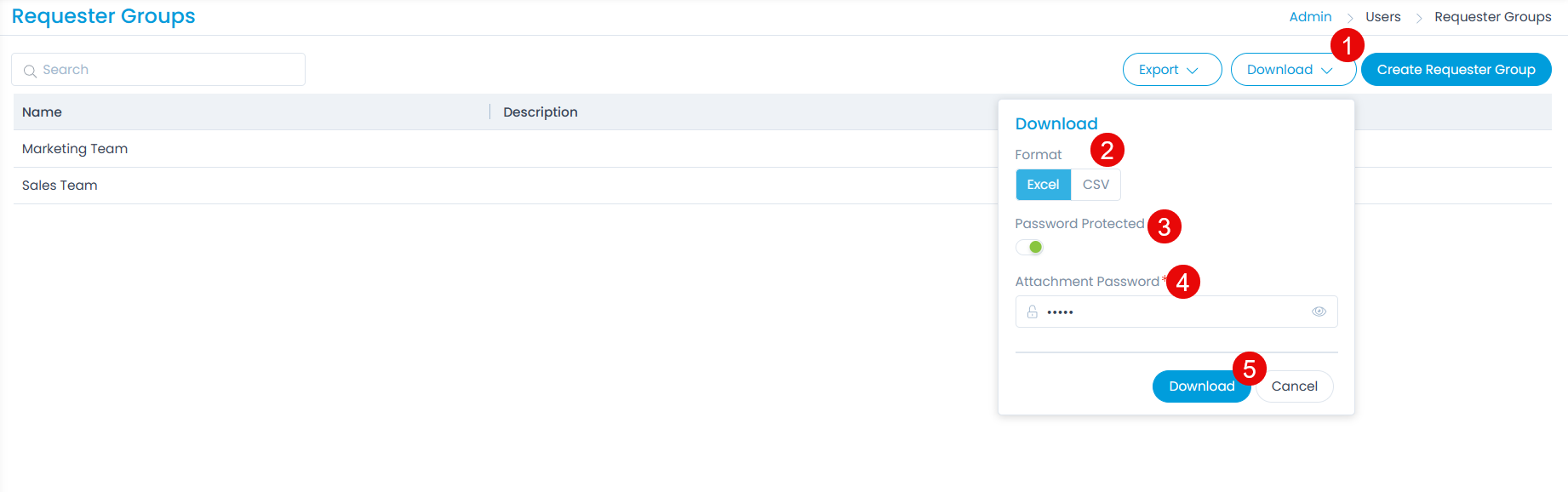 - Download the list of Requester Groups