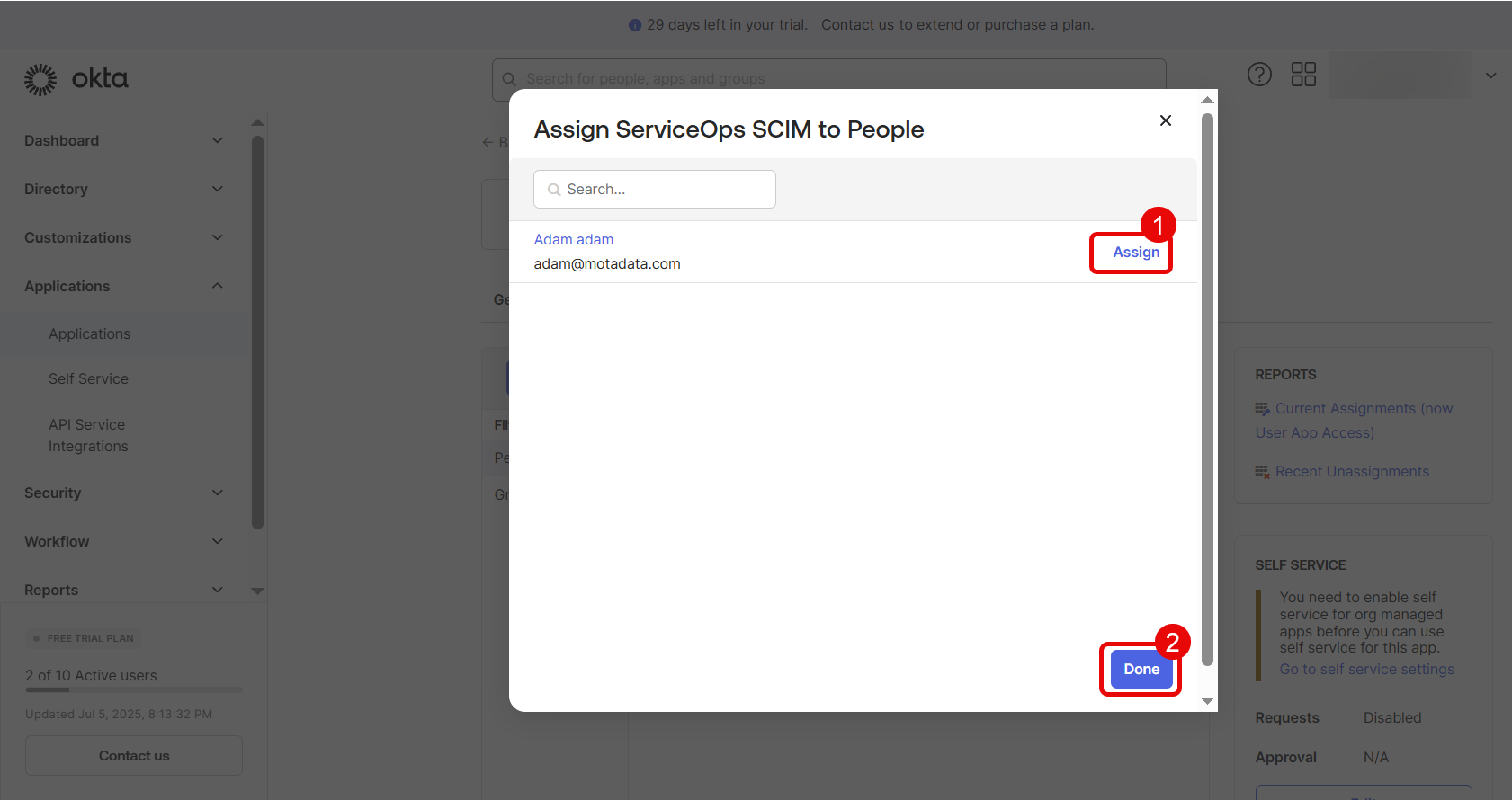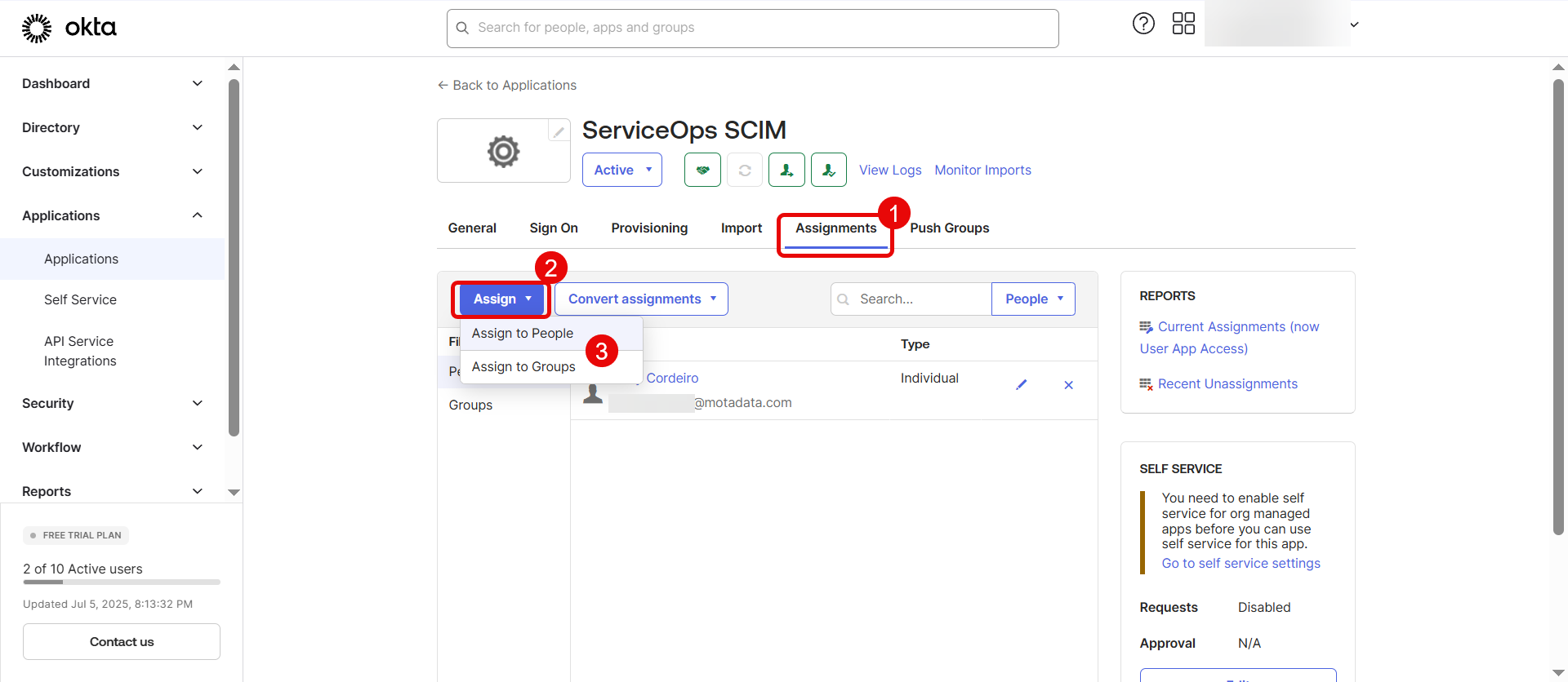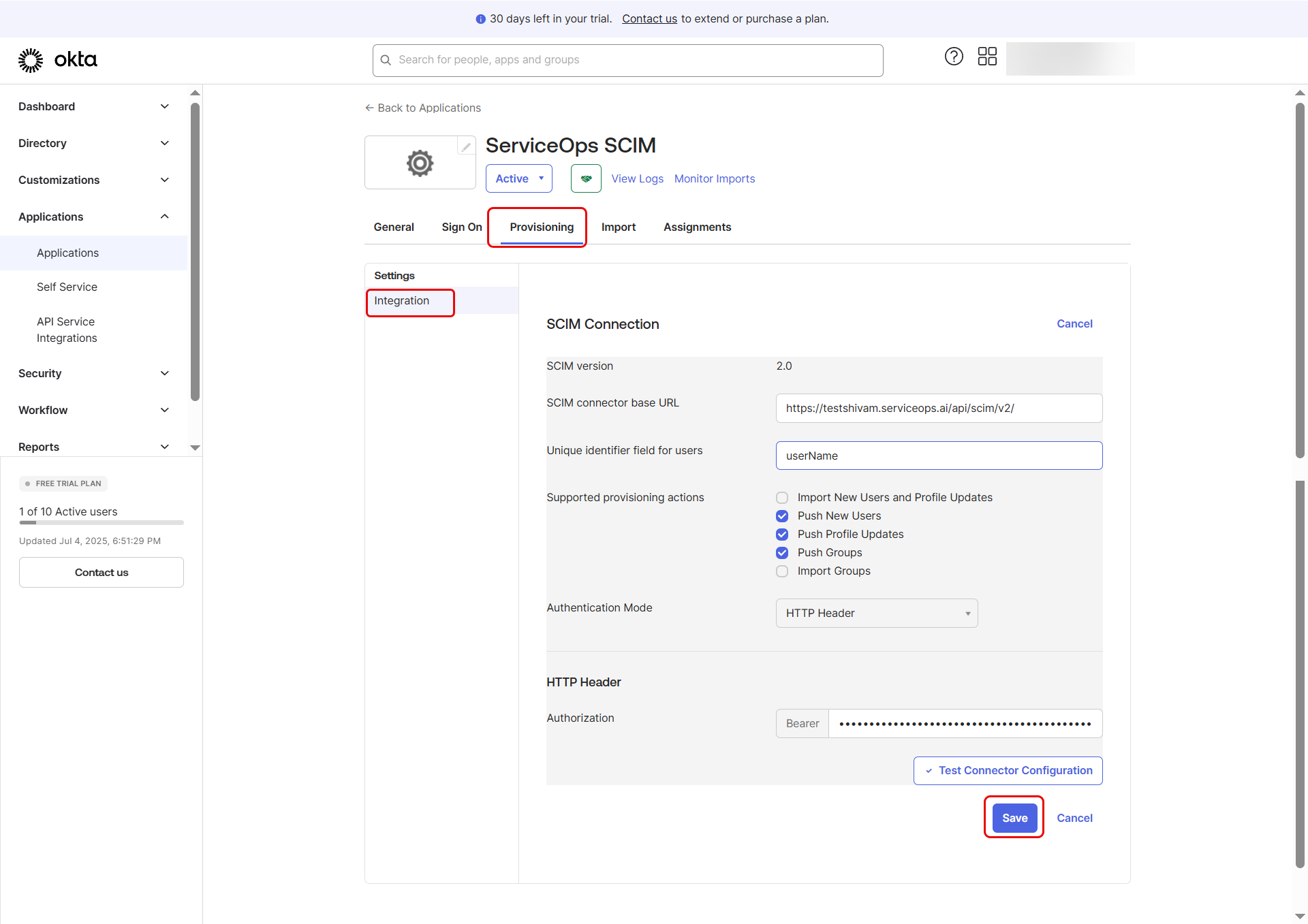 This guide outlines how to configure SCIM-based user provisioning in Okta. It assumes you have already obtained your SCIM Endpoint and Authentication Token from the ServiceOps SCIM configuration page.