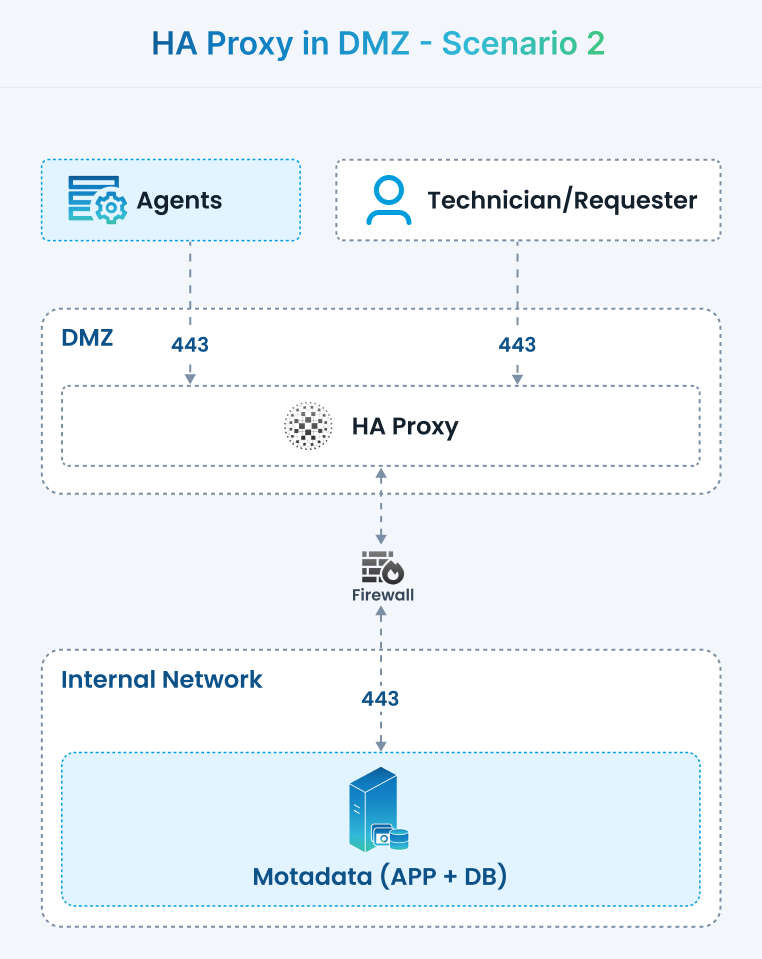 - Internet → HAProxy (DMZ): 443 (TCP)
