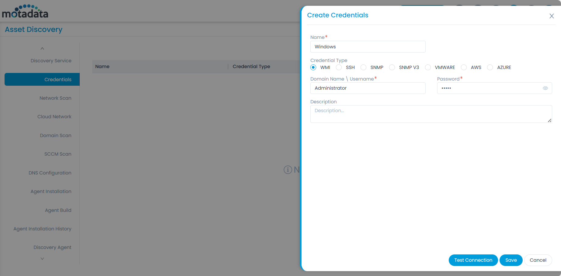 Once done, go to the Credentials tab and create the credentials for the machine to which you want to upgrade the agent.