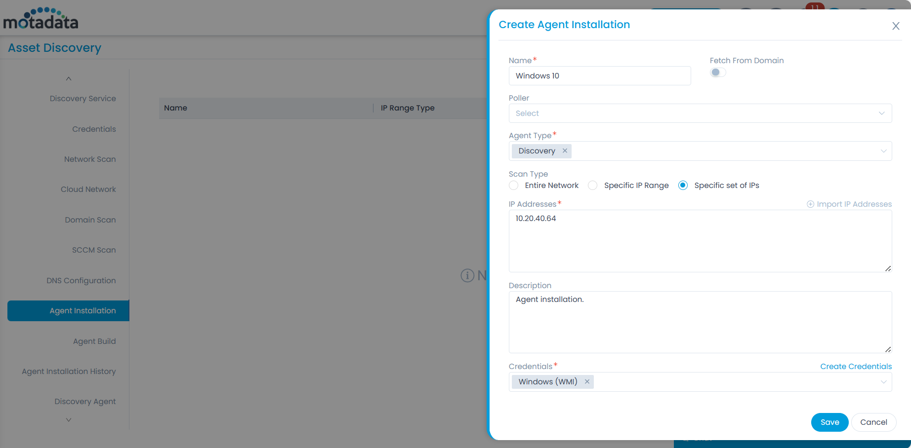 - Next, create the Agent Installation.