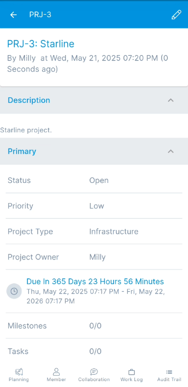 - Edit Project details