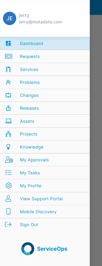 Login to the ServiceOps App by entering the email address and password. You can also sign in using the various SSO service providers if configured. For example, here Key Cloak and One Login SSO services are configured and hence the Login buttons are available. In case, you forget your password, you can use the Forgot Password link to reset it. The password reset link will be sent to your registered email address.