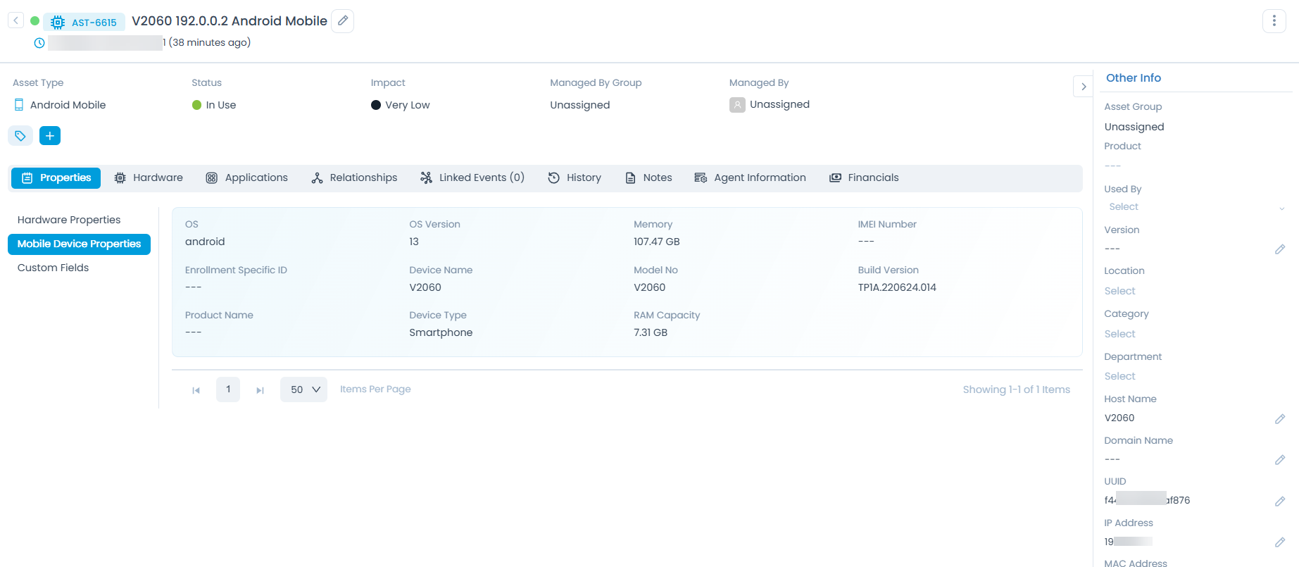 You can click on the asset and view its details if required. Also, you can edit the details as per your requirement.
