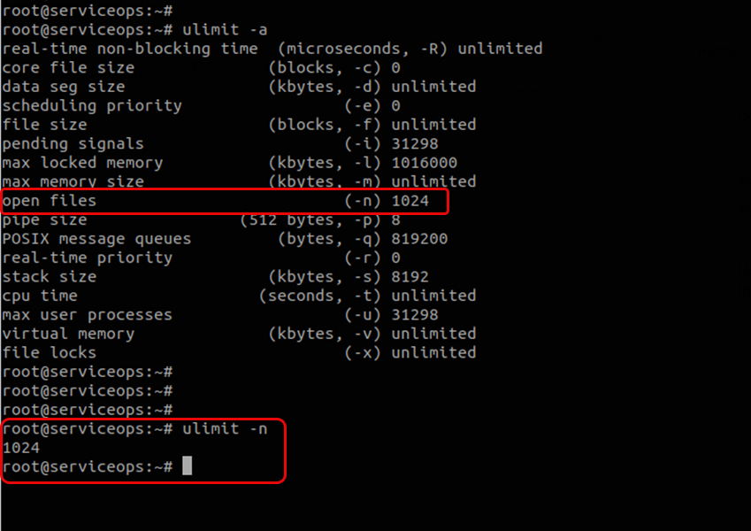 Check the current open limit from the Linux machine side using the below commands:
