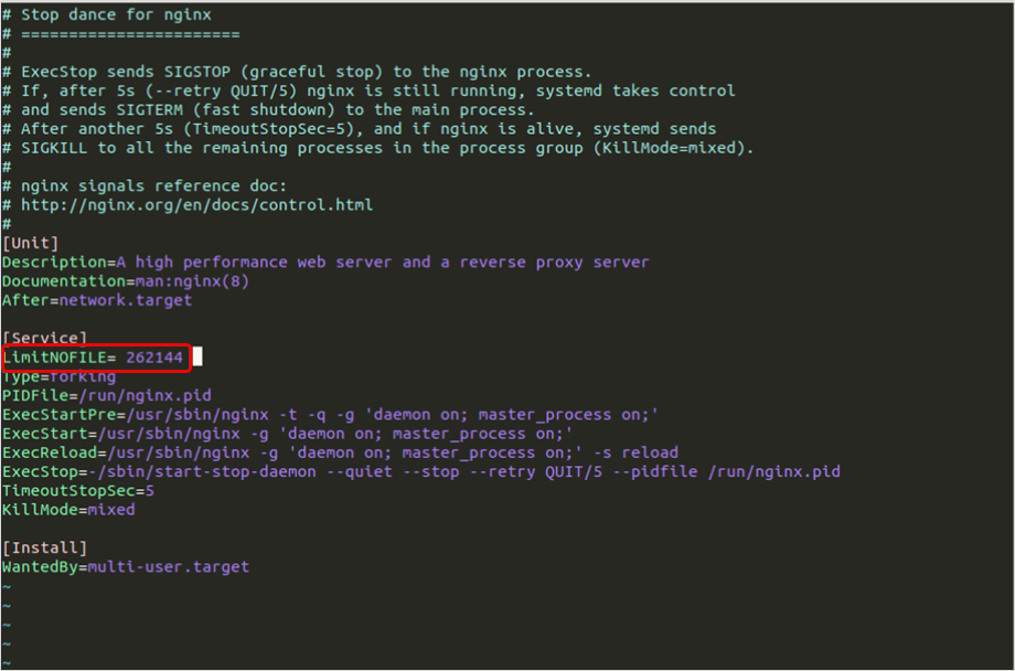 LimitNOFILE= 262144