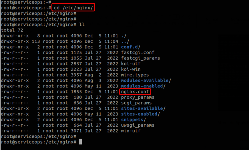 - Navigate to the "/etc/nginx/nginx.conf" file path.