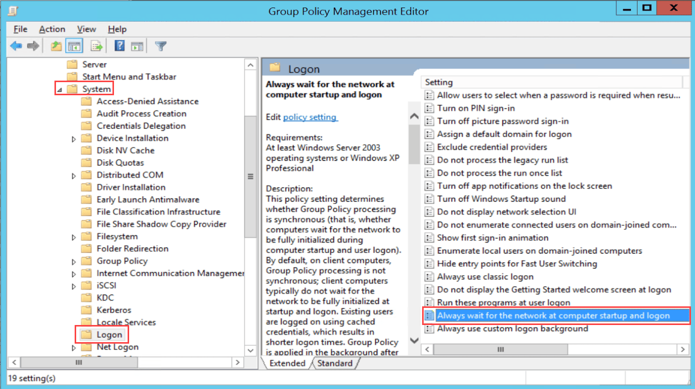- Navigate to Computer Configuration > Policies > Administrative Templates > System > Logon