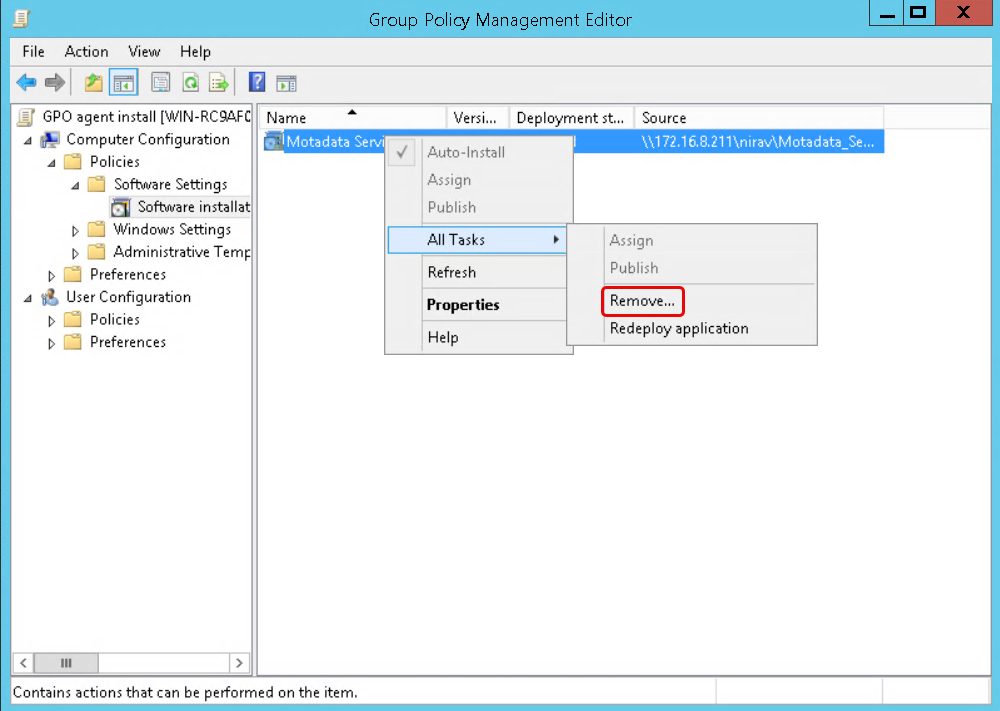 - Right-click and select All Tasks > Remove