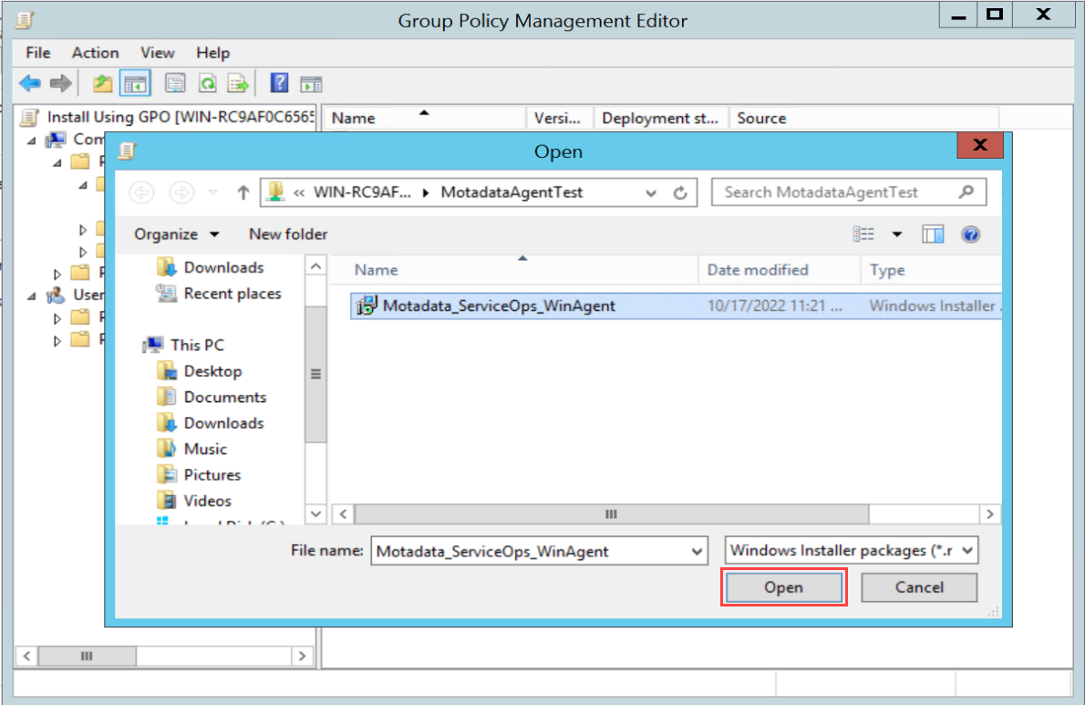 - Select the pre-defined agent setup file and click Open