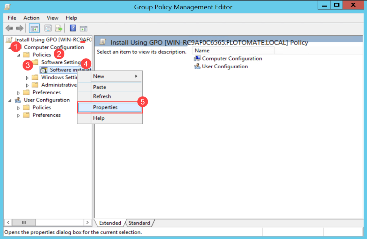 - In the Group Policy Management Editor, navigate to: Computer Configuration > Policies > Software Settings > Software Installation