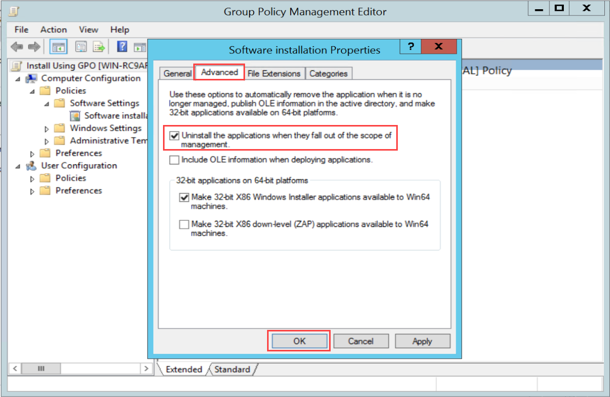 - Navigate to Computer Configuration > Policies > Software Settings > Software Installation