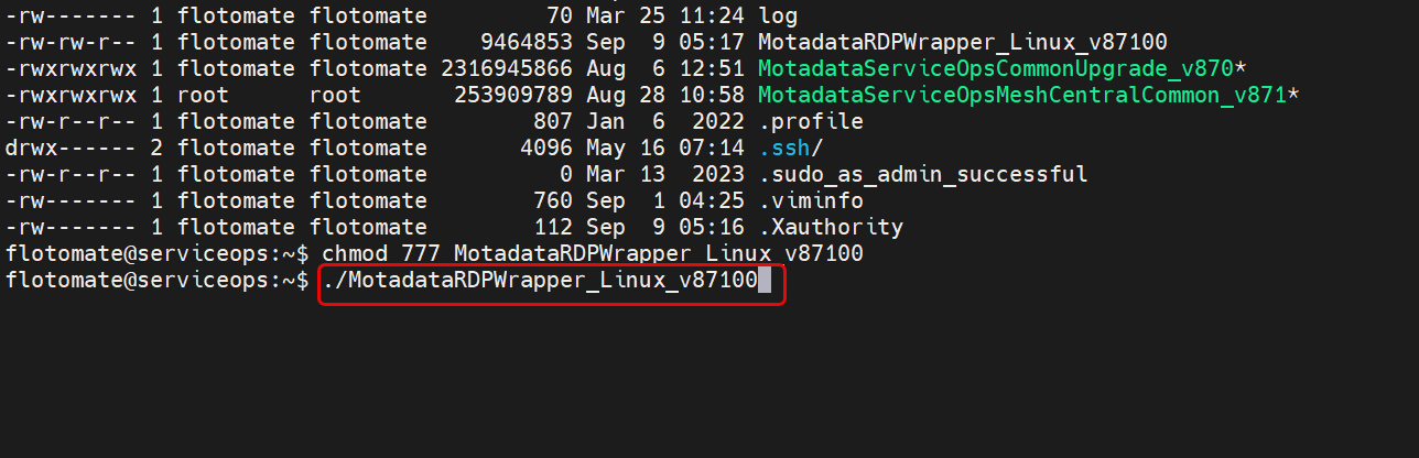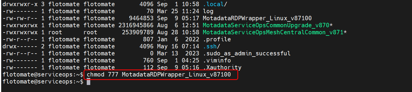 chmod 777 MotadataServiceOpsCommonMacMeshRDPAgent_v8x