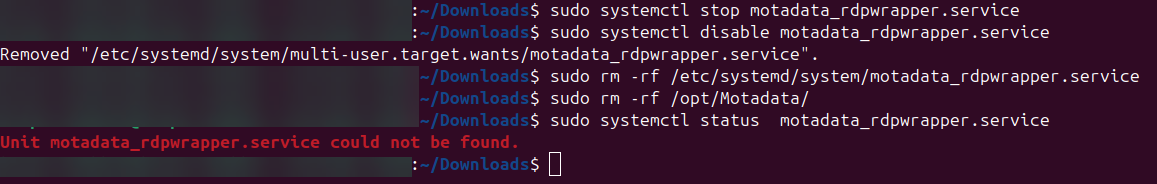 sudo rm -rf /etc/systemd/system/motadata_rdpwrapper.service