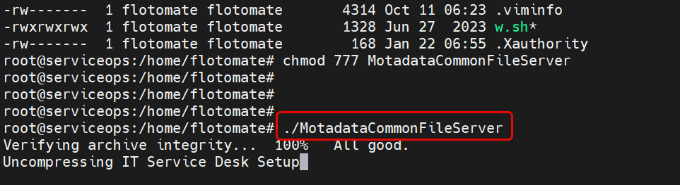 chmod 777 MotadataCommonFileServer