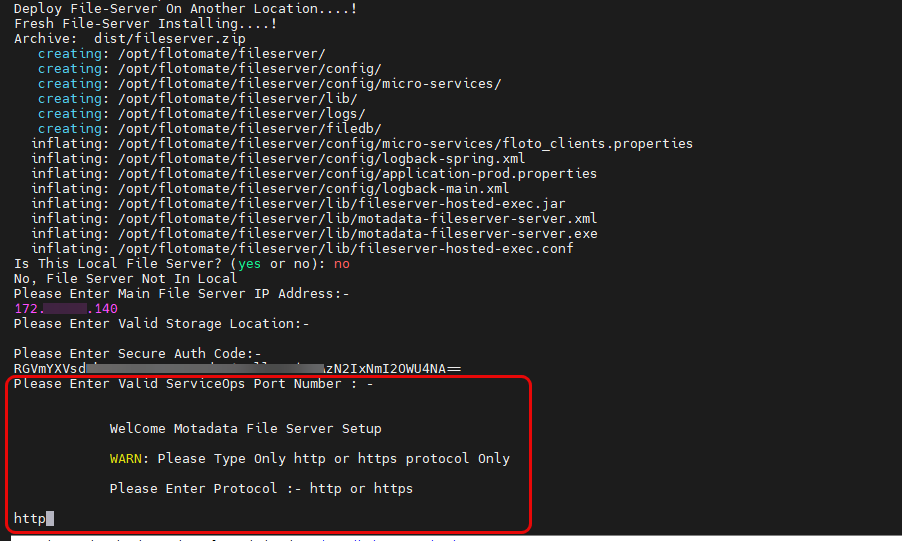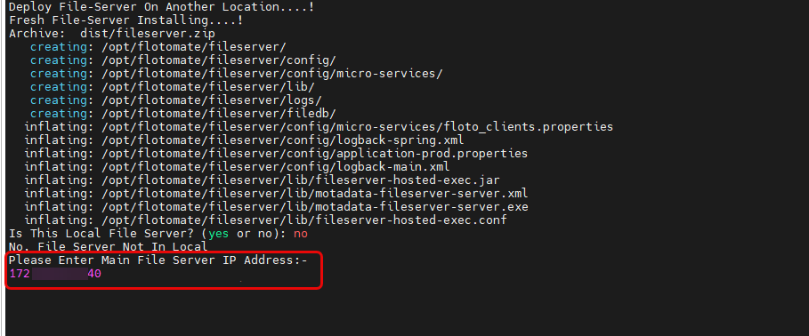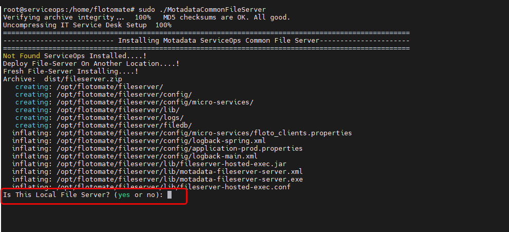- Local File Server (YES): Type yes when the File Server is installed on the same machine as ServiceOps. It acts as the Primary File Server (downloads patch content and serves endpoints).