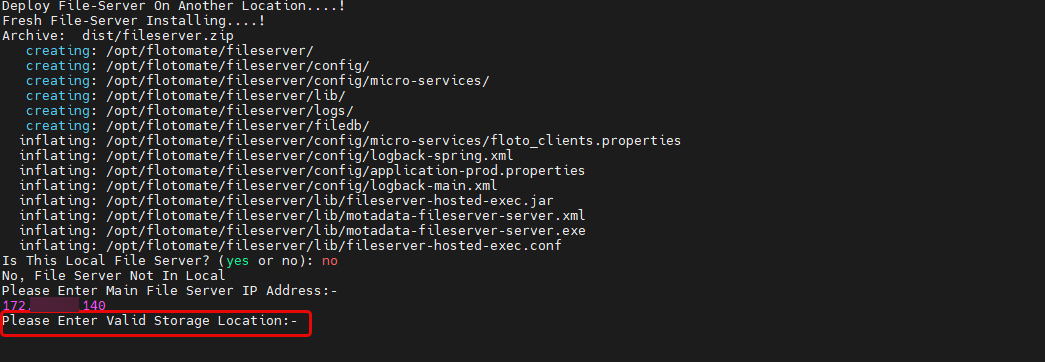 Configure Settings: The command prompt will ask for the File Server type and connection details. Choose the correct type based on your deployment strategy, as this affects patch distribution performance and bandwidth usage (conceptually the same as Windows—see Windows File Server Installation).
