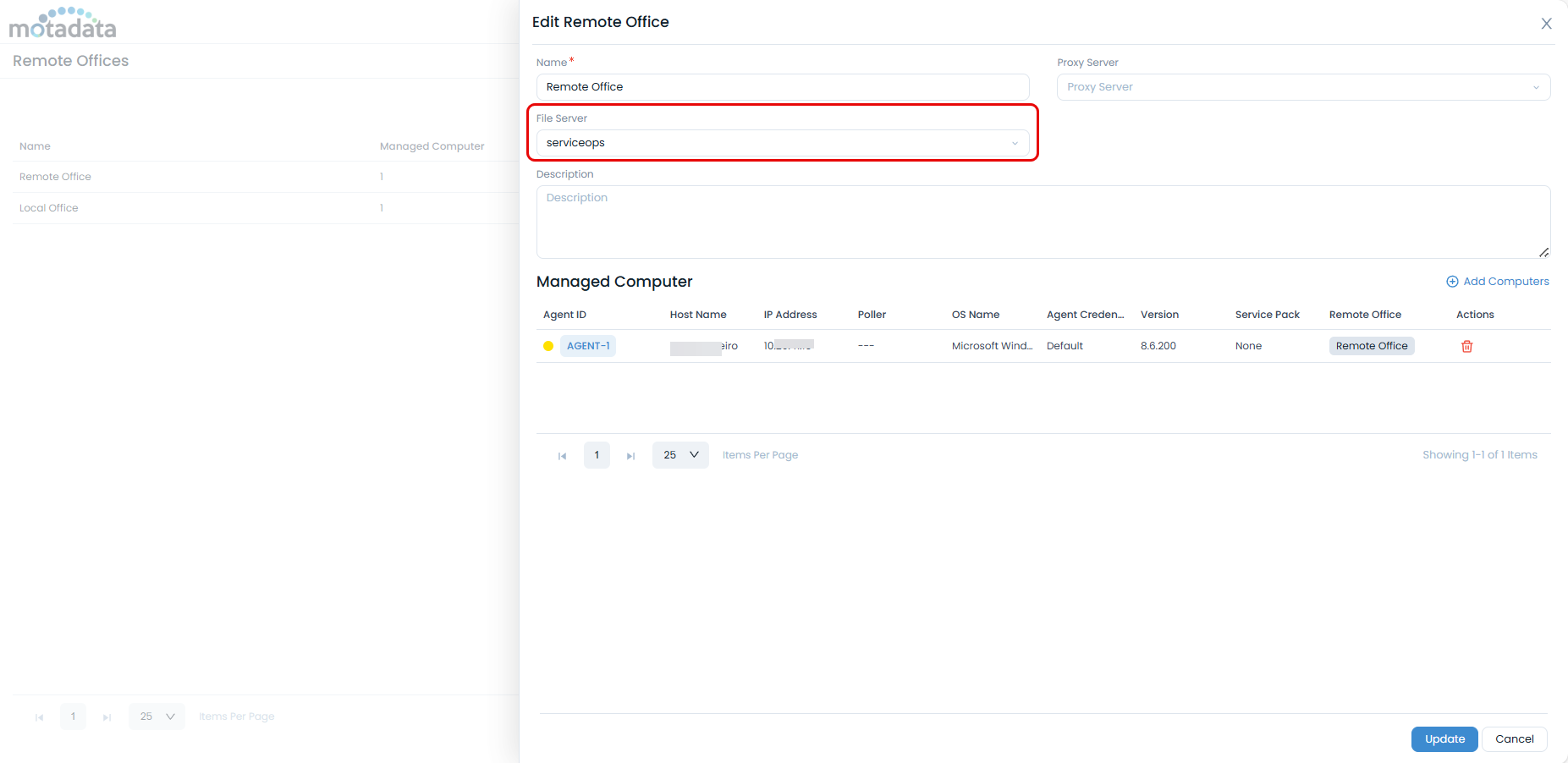 This section explains how to verify the File Server in Motadata ServiceOps, set its public URL (for remote access), and assign it to remote offices for efficient patch distribution. It also includes maintenance, troubleshooting, and upgrade/security best practices.
