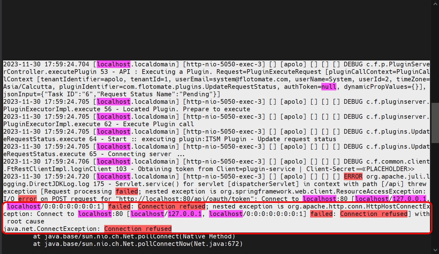 The default Plugin Server port is 5050. Change it to avoid conflicts or meet security requirements. This is required for ServiceOps v8.3.9 and above if you encounter a "Connection refused" error.
