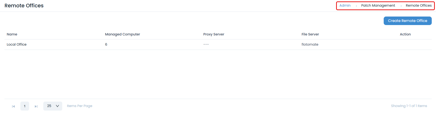 - Navigate to Admin > Patch Management > Remote Offices.