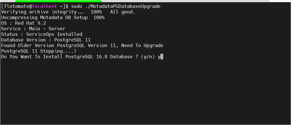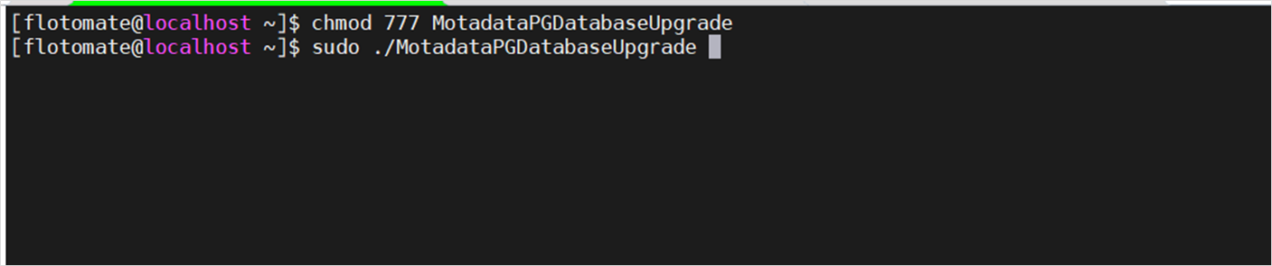 chmod 777 MotadataPGDatabaseUpgradeRun Installer: Execute the PostgreSQL upgrade installer: