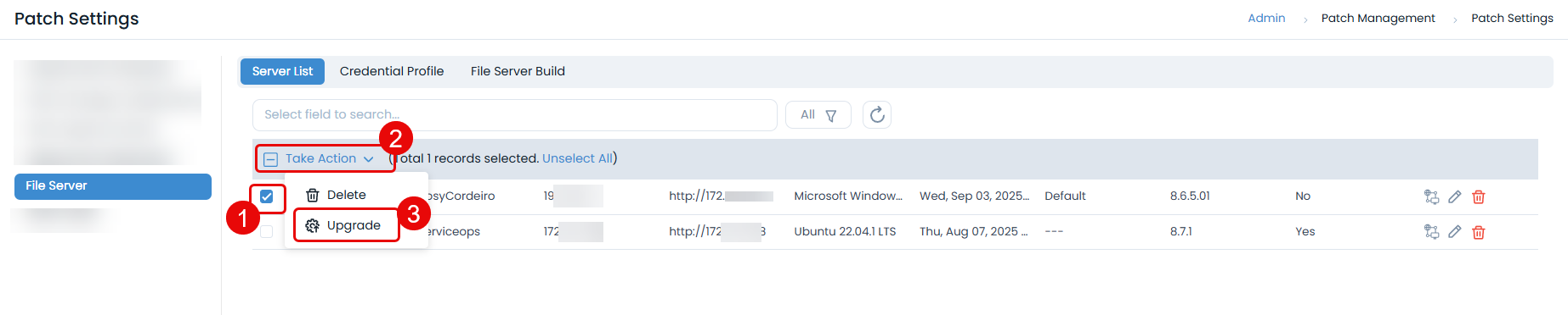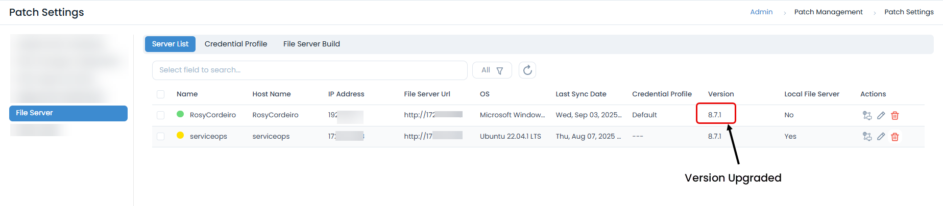 The File Server is a critical component for patch and package management. To ensure security, compatibility, and uninterrupted service, it is mandatory to keep your File Servers updated to the latest version.