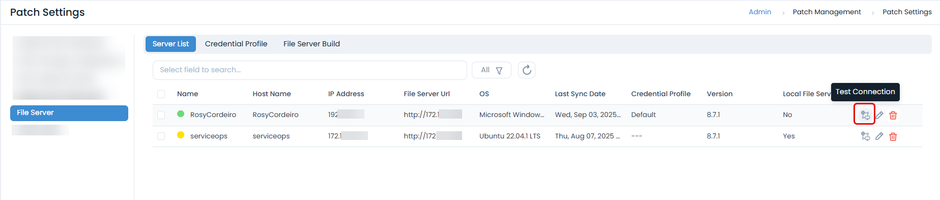 Test Server Connection: In the Server List, click the Test Connection icon for the server to ensure ServiceOps can communicate with it.