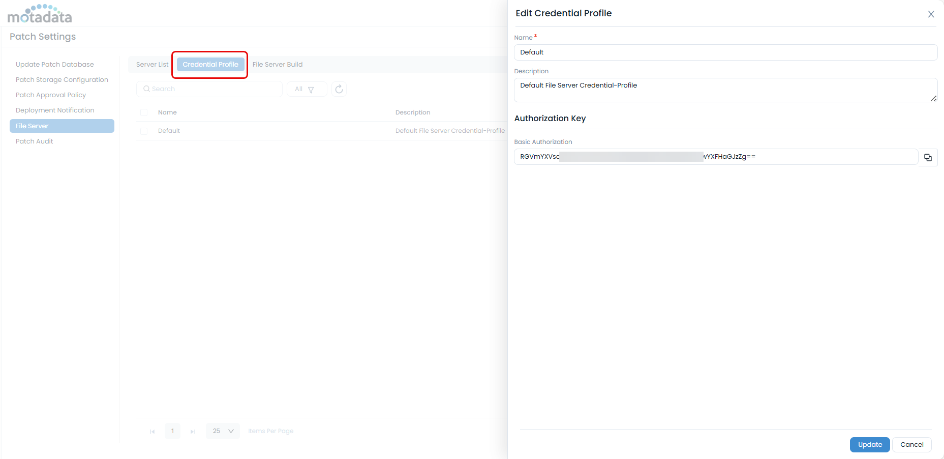 Navigate to Admin > Patch Management > Patch Settings > Credential Profile.