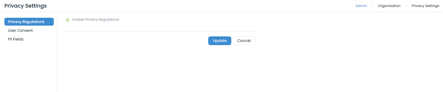 - Navigate to: Admin > Organization > Privacy Settings