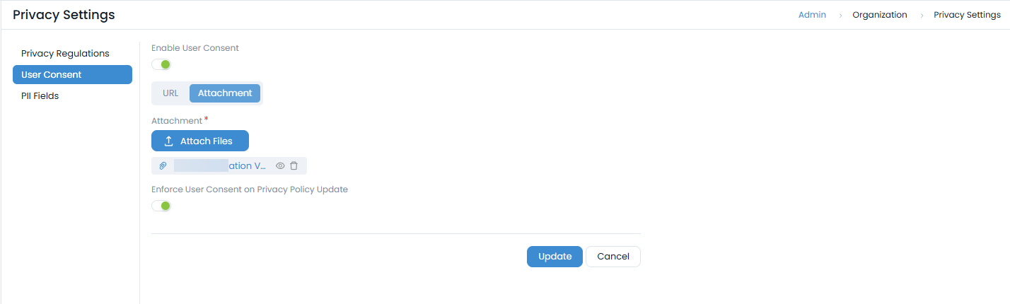- Policy Attachment: Upload privacy policy document