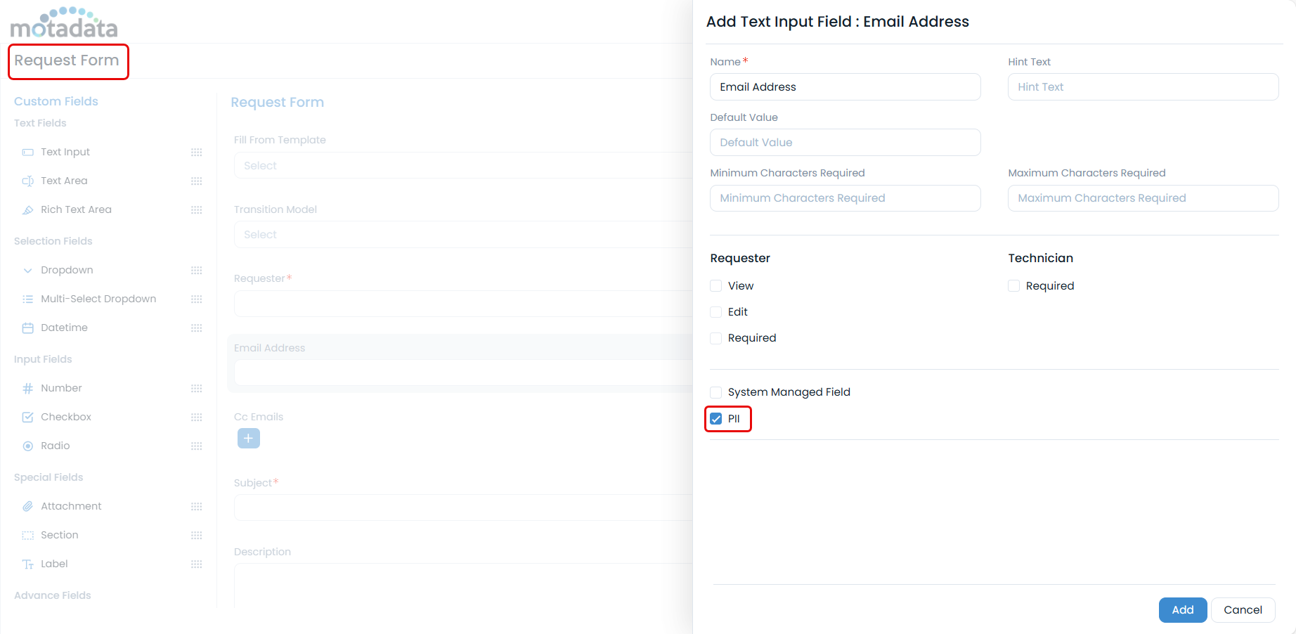 Manage PII fields in request forms: