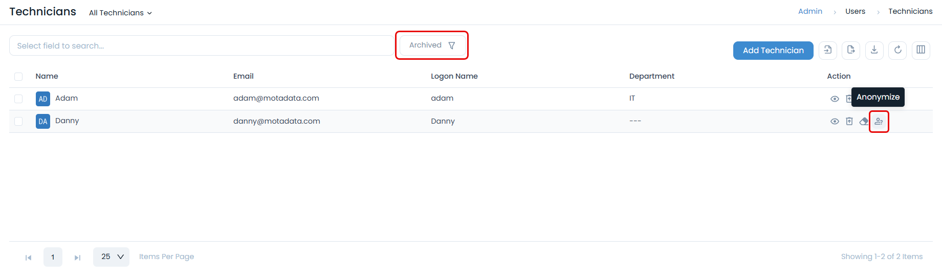 - User Selection: Select archived user for anonymization