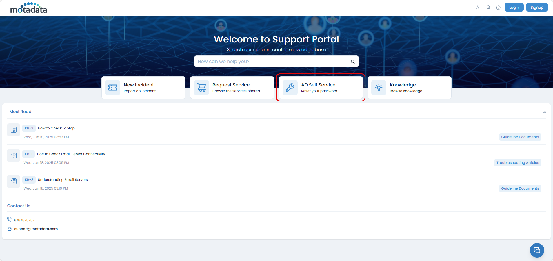 You can find the AD Self Service options on the Support Portal login page.