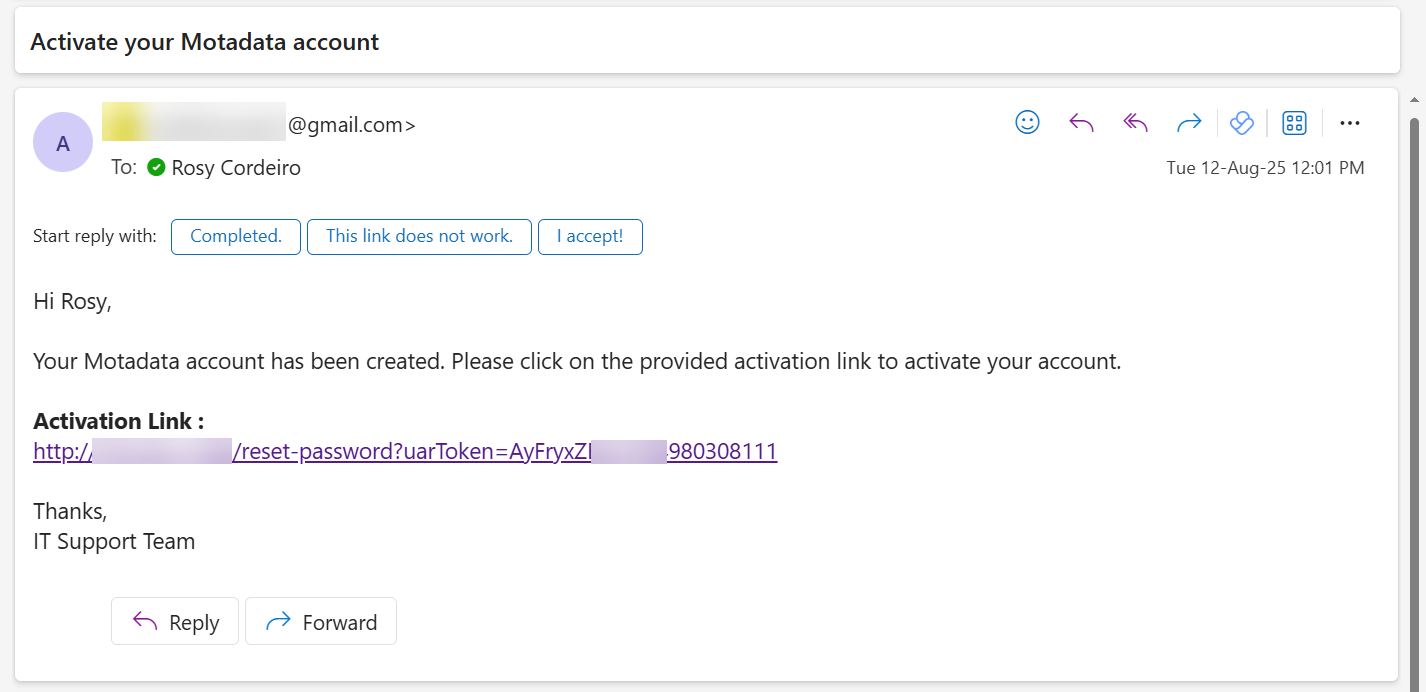Your IT administrator may create an account for you. In this case, you will receive a verification email with a link to set up your password. For detailed instructions on first-time login and password setup, refer to Login Methods.